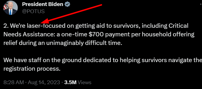 I know what you’re thinking, $51 million to Maui, $13 Billion more for Ukraine, seems a wee bit unbalanced. But you’re thinking about it all wrong.