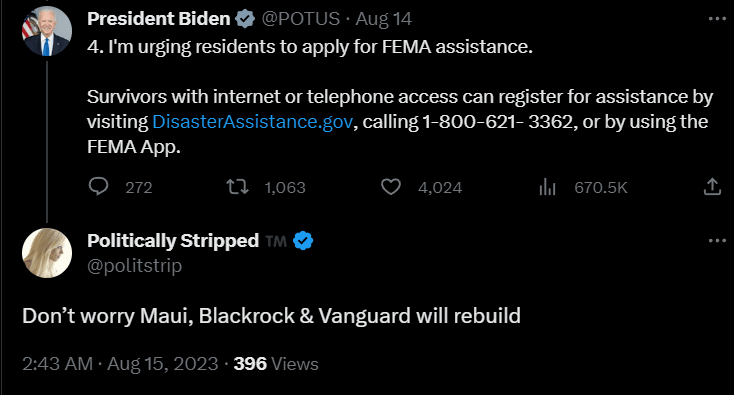 See, they do care! They really do care! And as an act of caring so so much, they’ve offered victims of the Maui infernos $700.