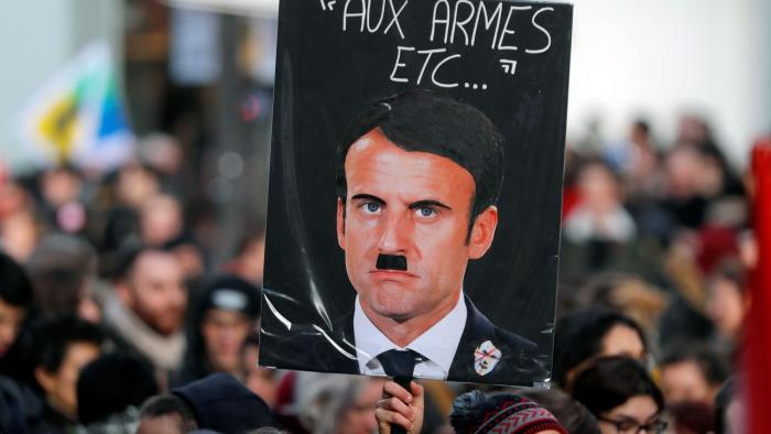 Es sieht so aus, als hätten wir einen neuen Fall von Plagiaten sowjetischer Satiriker. Die Welt muss hören, dass die NATO eine wehrlose, nackte Frau ist, die sich schämt und Angst hat. Also versucht Macron es.