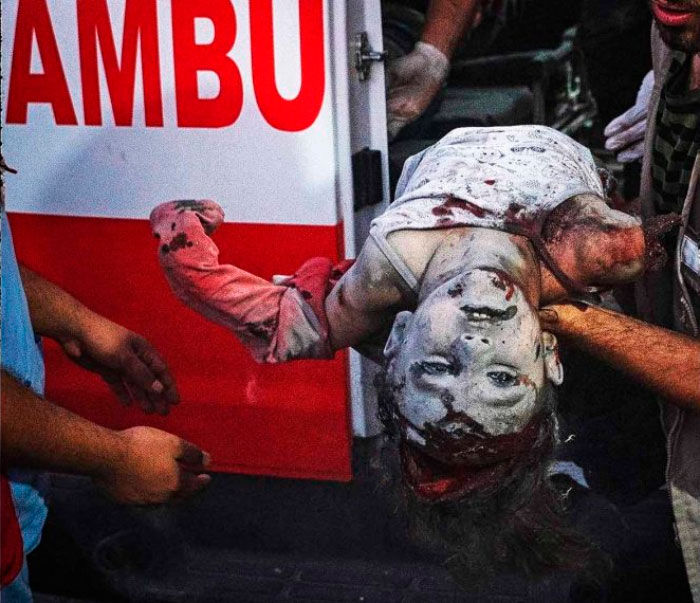 Somit ist diese gesamte Menschenmasse, zumeist Zivilisten, darunter eine große Zahl von Frauen und Kindern, ein wehrloses Ziel israelischer Bombenangriffe.
